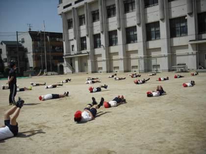 体育では、5月のスポーツテストに向けて、柔軟や腹筋、50メートル走をしました。スポーツテストに向けて、昨年度よりも記録が伸びるように、練習に励んでいきたいと思います。