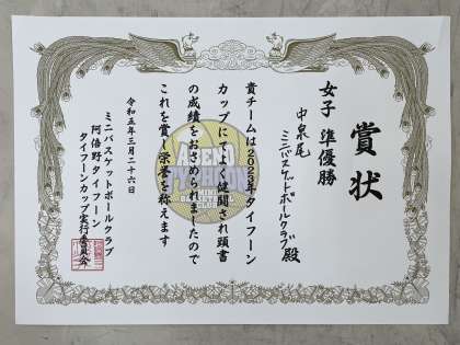 2023年タイフーンカップにて、中泉尾ミニバスケットボールクラブが準優勝されたそうです。