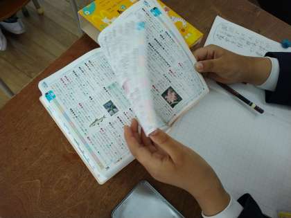 1年生の時に習った五十音を声に出しながら、色んな言葉を調べていました。