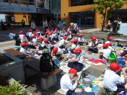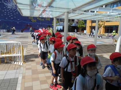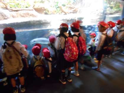 1年生と海遊館へ遠足に行きました。大きな水槽の魚が餌を食べているとことが見れて喜んでいました。みんなでお弁当を食べて、写真を撮って学校へ帰りました。
