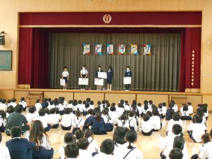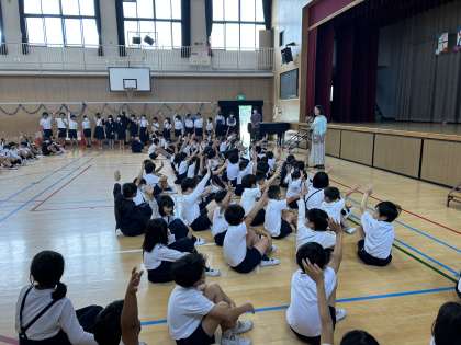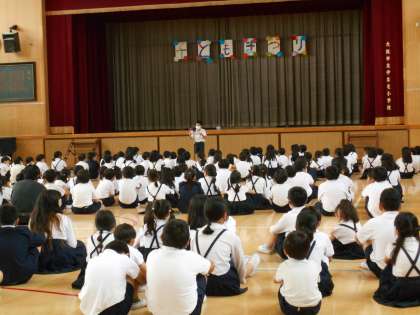 校長先生が子どもたちに「楽しかった人?」と聞くと、元気良くたくさんの人が手を上げていました。