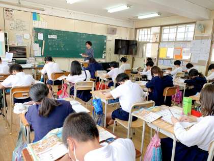 社会科はこれから「歴史」の学習をしていきます。縄文時代のイラストから見つけたことをみんなで話し合いました。服装が今と違ったりものを狩猟していたり1つ1つ細かいところまで見て考えました。