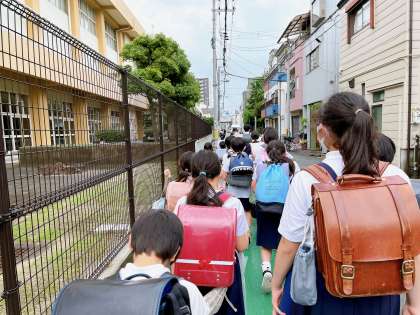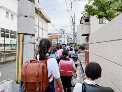 それぞれの地域子ども会で集まったあとは,集団下校です。
