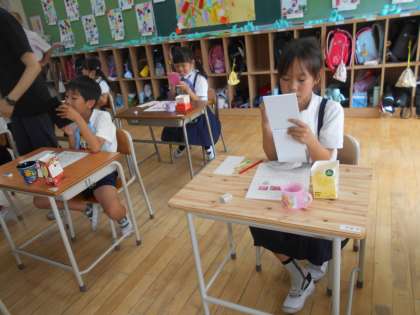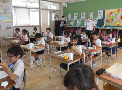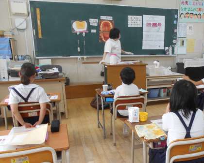 今日の2・3時間目に歯磨き指導をしました。歯垢を残さない歯の磨き方や、うがいの仕方も教えてもらいました。こどもの歯が抜けて永久歯にはえかわる2年生なので、家でもう一度思い出して歯磨きをして虫歯にならないようにしましょう。(1組の様子です)