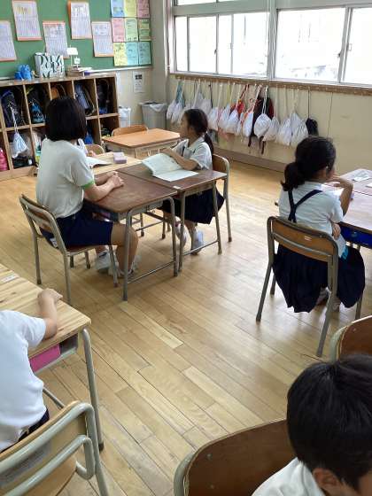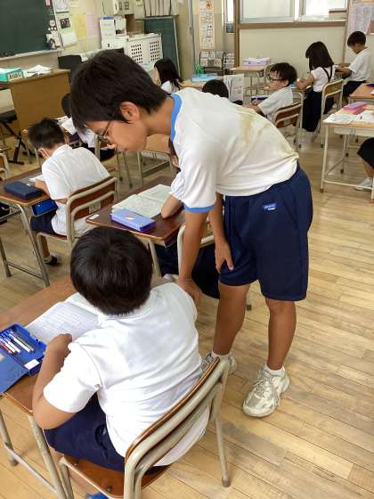 大正東中学校の生徒6名が職場体験に来ました。教室や運動場でいろいろな体験をしました。学習や遊びなど小学生に戻ったようで楽しかったようですが、疲れたという生徒もいました。これからの職業選択の1つになればいいですね。