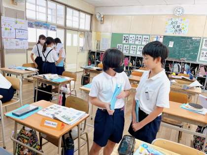 学習してきた「夏の思い出」を友だちに英語でスピーキング練習をしました。自分がどんなことをしたのかや食べたことなど思い出を言い合いました。一人ひとりきちんと言えるように頑張っていました。
