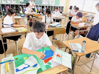 オリジナル浮世絵も完成に近づいている人が多くなってきました。みんな個性豊かな作品に仕上げています。