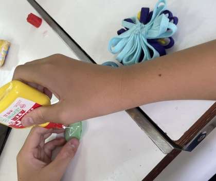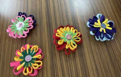 久しぶりのクラブで緊張している子どもたちもいましたが、班で協力して素敵なブローチが出来上がりました。