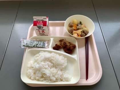 ごはん、牛乳、みそカツ、じゃがいもと野菜の煮物、焼きのりでした。