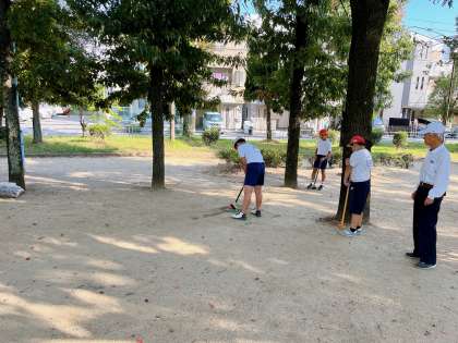 泉尾公園で地域の方にグラウンドゴルフを教えていただきながら活動しています。回数を重ねるごとにみんなが少しずつ上手になっています。
