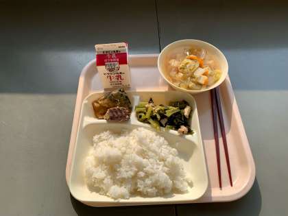 ごはん、牛乳、さばのみぞれかけ、すまし汁、こまつなの煮びたしでした。