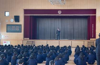 寒さに負けない子どもたちの元気な歌声で、終業式が始まりました。
