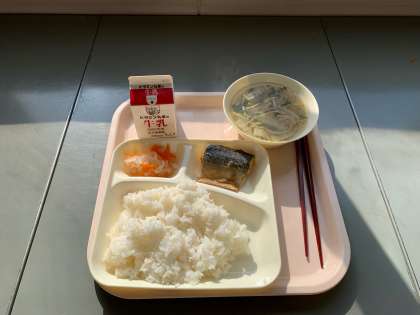 ごはん、牛乳、さばのみそ煮、すまし汁、紅白なますでした。