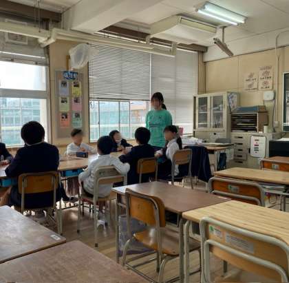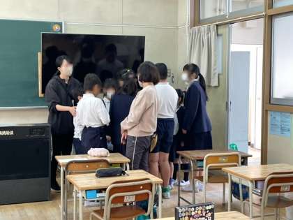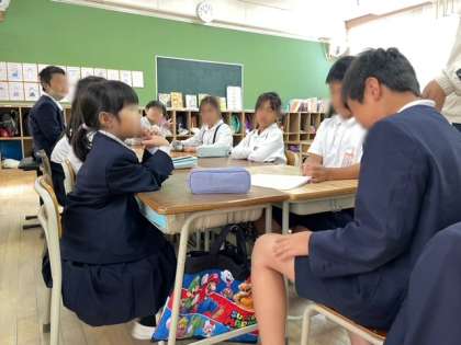 中泉尾小学校では、たてわり班で掃除をしたり、子どもまつりで一緒のグループになって活動したりします。秋にはオリエンテーリングにも行き、交流を深めます。