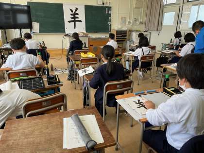 4年生になって初めての習字をしました。「羊」という文字を書きました。気を付けるところを意識しながら、一人ひとりが最後まで集中して書くことができました。