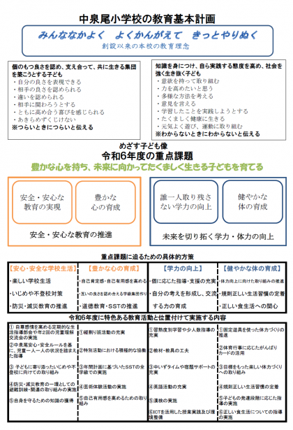 今回の校長室の窓は、中泉尾小学校の教育基本計画のお話です。