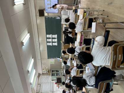 先週の学習参観で習った「How are you?」を使って「I'm 〇〇.」を今度はジェスチャーも使って覚えました。学習後も教室では英語が飛び交っていました。