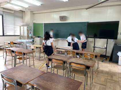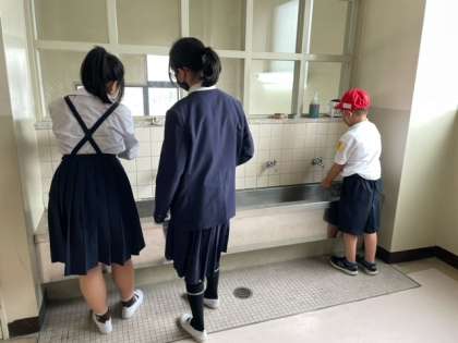 また、その後の掃除も「たてわり班清掃」で行いました。6年生がリードしながらみんなで掃除しました。いつもとは違う場所をたてわり班の友達と清掃することで、楽しく活動できていました。
