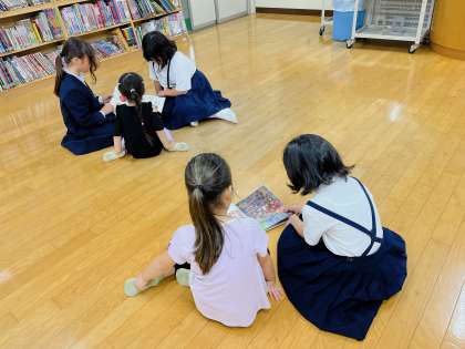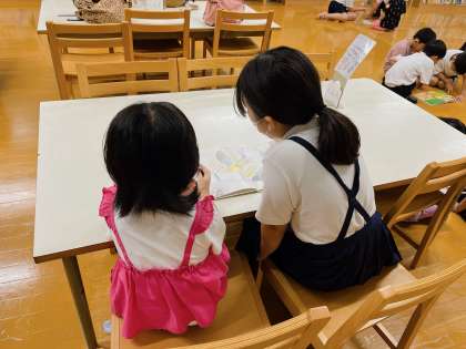 北恩加島保育所の子どもたちが学校見学に来ました。校内を回った後、図書室で交流しました。本の読み聞かせをしたり、一緒に本を見たりとお兄さん・お姉さんをたくさんしていました。みんなやさしく声掛けをしていました。