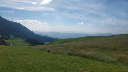 美しい空と緑。山の中腹で、ひとやすみ、ひとやすみ。