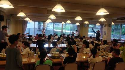 林間学習 昨日は一人の先生、今日は一人の子どもの誕生日。みんなでお祝いしました! happy birthday. 美味しくいただきました。