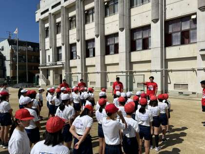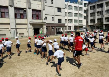 夢授業で、大阪市にあるレッドハリケーンズ大阪の選手にラグビーを教えてもらいました。はじめは緊張していましたが、ボールを使っていくうちに楽しく笑顔で活動するようになりました。終わりには、ラグビーをしてうれしかったことやスポーツのいいところを話してもらい、スポーツへの興味関心を高めることができました。教室にもどっても、「楽しかった。」という児童が多くいました。