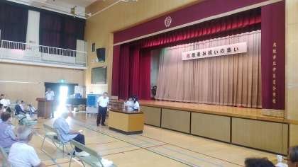 中泉尾地域社会福祉協議会の 竹村 正明 会長のご挨拶に始まり、中泉尾地域連合会の 岡嵜 敏明 会長のご挨拶に続いて、大正区役所の古川 吉隆 区長のご祝辞をいただきました。