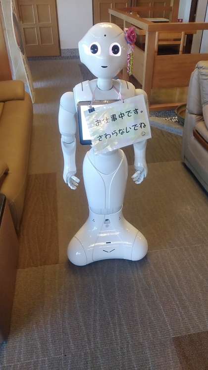 賢島パークホテル「みち潮」に到着しました。「開舎式」には、Pepperくんが登場しました。