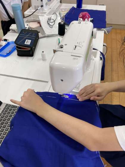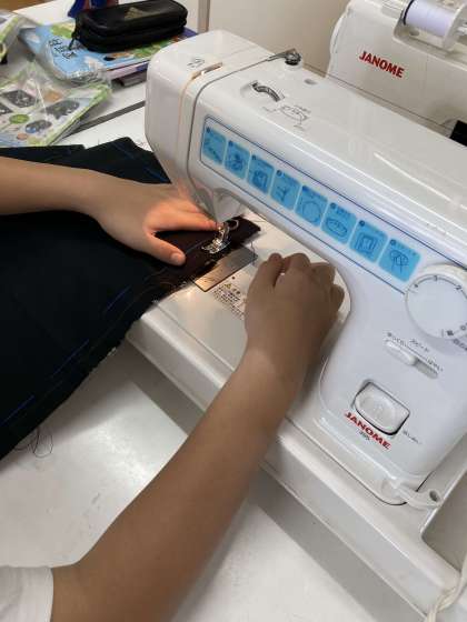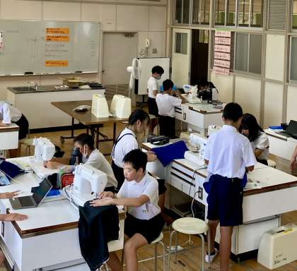 「おべんとうつつみ」のミシン縫いの学習をしています。角の縫い方や手順を考え、工夫して製作に取り組んでいました。