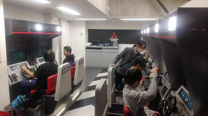 無事にキッザニア甲子園に到着し、子どもたちはパビリオンを体験しています。