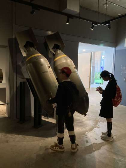 写真やパネル・実際資料や映画など、みんな真剣に見て、友だちと話し合っていました。映画の最後には、校長先生から「学童疎開」についてお話していただきました。一人一人が体験したことをもとに、これからも戦争の悲惨さや平和の大切さについて考え続けていってほしいと願っています。