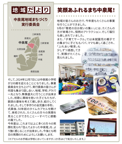 これからも、中泉尾小学校は地域の皆様と手を取り合って、教育活動を進めてまいります。地域の皆様のご支援とご協力を賜りますよう、お願いいたします。