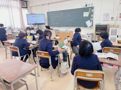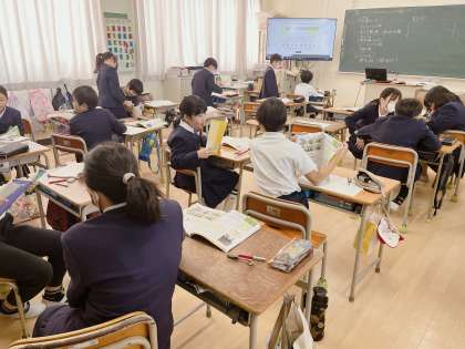 社会科では、「柏原市のぶどう作り」について学習しています。資料からわかったことや考えたことを読み取って交流しました。交流すると友だちの考えや意見を聞くことができて、学習を深めることができました。