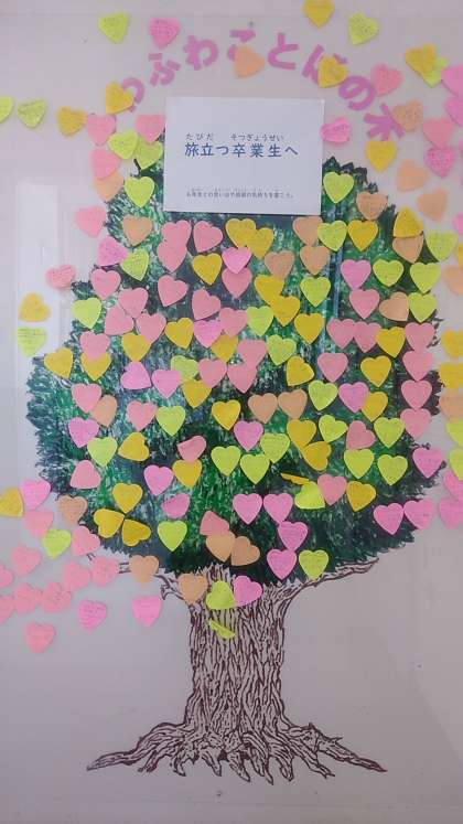 卒業生の皆さん。嬉しいとき、悲しいとき、苦しいとき、道に迷ったとき、いつでもここに、いつでも我が家に、いつでも中泉尾小学校に帰っておいで。みんなで待っているよ。