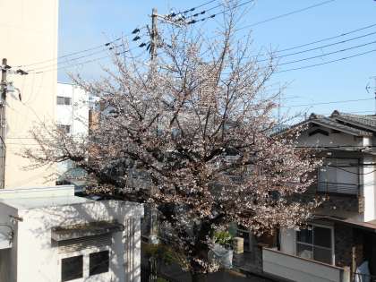 暖かくなり、正門横にある桜の木に花が咲き始めました。まだ少ししか咲いていませんが春が来たように感じます。また、運動場にある1年生のチューリップも咲きました。これからもっと咲いていくでしょう。入学式に咲いているといいですね。