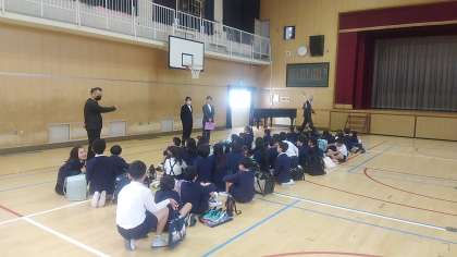 始業式前には、着任した教職員の紹介も行いました。そして、始業式後には、新しい学年の先生の発表をしました。また、新しい1年が始まります。校長先生も、皆さんと話をしたり、一緒に活動をしたりするのが楽しみです。校長室にも遊びに来てくださいね。