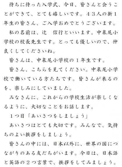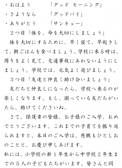 今回の校長室の窓は、4月7日の入学式の「式辞」を掲載します。「ありがとう」の言葉を大切する子どもたちを育て、「ありがとう」の言葉がいっぱいになる学校を創ります。