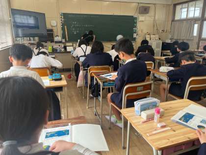 「世界から見た日本」の学習では、地球儀や世界地図を使用して、地球について調べました。海の広さや大陸の名前などを調べました。地球から見た日本はすごく小さいことがわかりました。