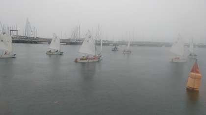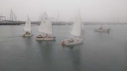 くるくると回りながら、子どもたちは上手に乗艇しています。
