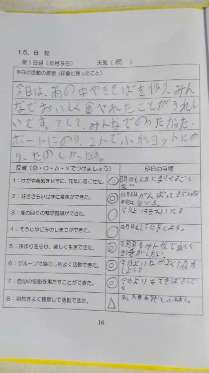 一人ひとりが、今日一日の振り返りを、旅のしおりに記しました。