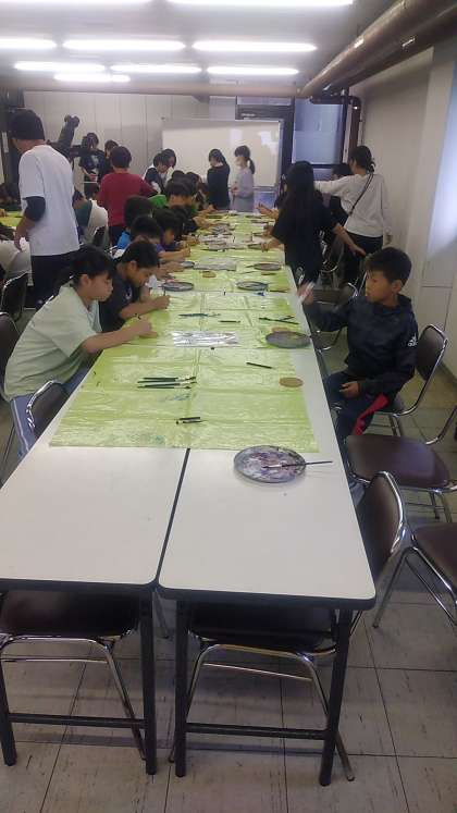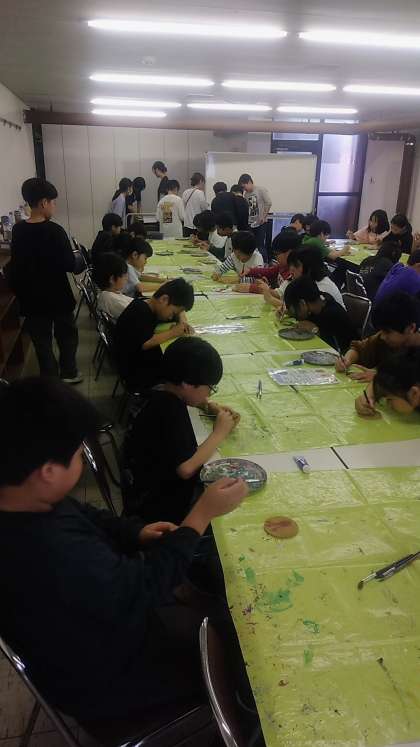 子どもたちは、コースターアートに真剣に取り組んでいます。出来上がりが楽しみです。