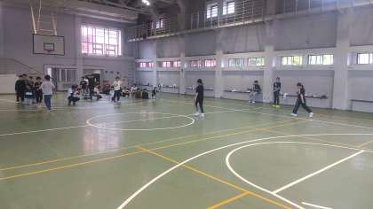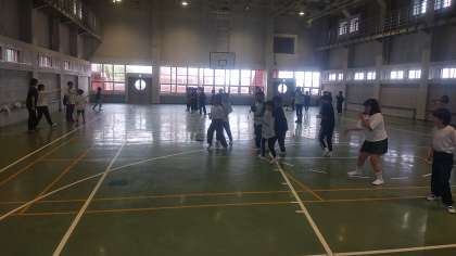 体育館で、ゲームやフリスビードッジボールをして、楽しみました。
