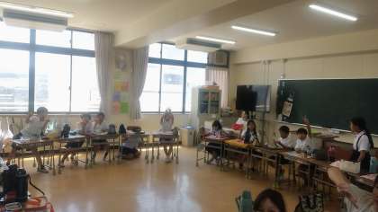 万博への遠足は、中止になりました。朝の放送朝会で、私から万博への遠足が中止になった理由について、子どもたちに説明しました。そして、「楽しみにしていたのに、ごめんなさい」とお話しました。子どもたちは、私の話をよく聞いてくれていたようです。