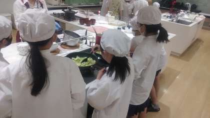 それから「エコクッキング」の体験をしました。グループで協力して、調理実習をしました。自分たちで作った「白ごはん」、「味噌汁」、「ふりかけ」、「野菜炒め」は美味しかったようです。5年生の皆さん、よく頑張りましたね。中泉尾小学校では、これからも「ほんまもん」に触れる様々な体験学習を進めてまいります。