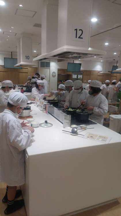 大阪ドーム前にある「ハグ・ミュージアム」で、「エコ・クッキング」の体験をしました。職員の方から「地球環境とエネルギー」と「考える防災教育」の冊子をもとに、SDGsに関わるお話をしていただきました。