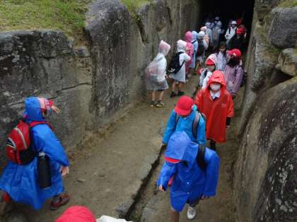 残念ながら雨が降ってしまいました。石舞台の石室に入りました。