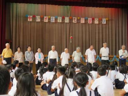 毎年、老人クラブのみなさんに、「グランドゴルフ」のお店を開いていただいています。今年は、ホールインワンをした子どもがいたそうです。暑い中丁寧に指導していただき本当にありがとうございました。