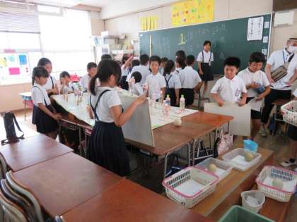ブルーシートの海に泳ぐ魚たち。何匹連れたでしょう。お父さんやお母さんと一緒に来た弟や妹にも人気があります。