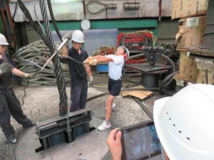 見ていると次々とつなぎ目のワイヤーが編みこまれていますが、子どもたちでは全く歯が立ちません。