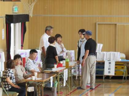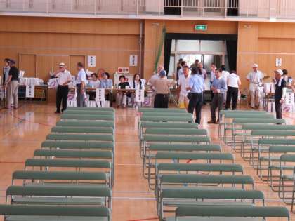 午前9時から地域の方々やPTAの方々が集まり、会場の設営や受付、お土産の用意と手際よく準備していただきました。